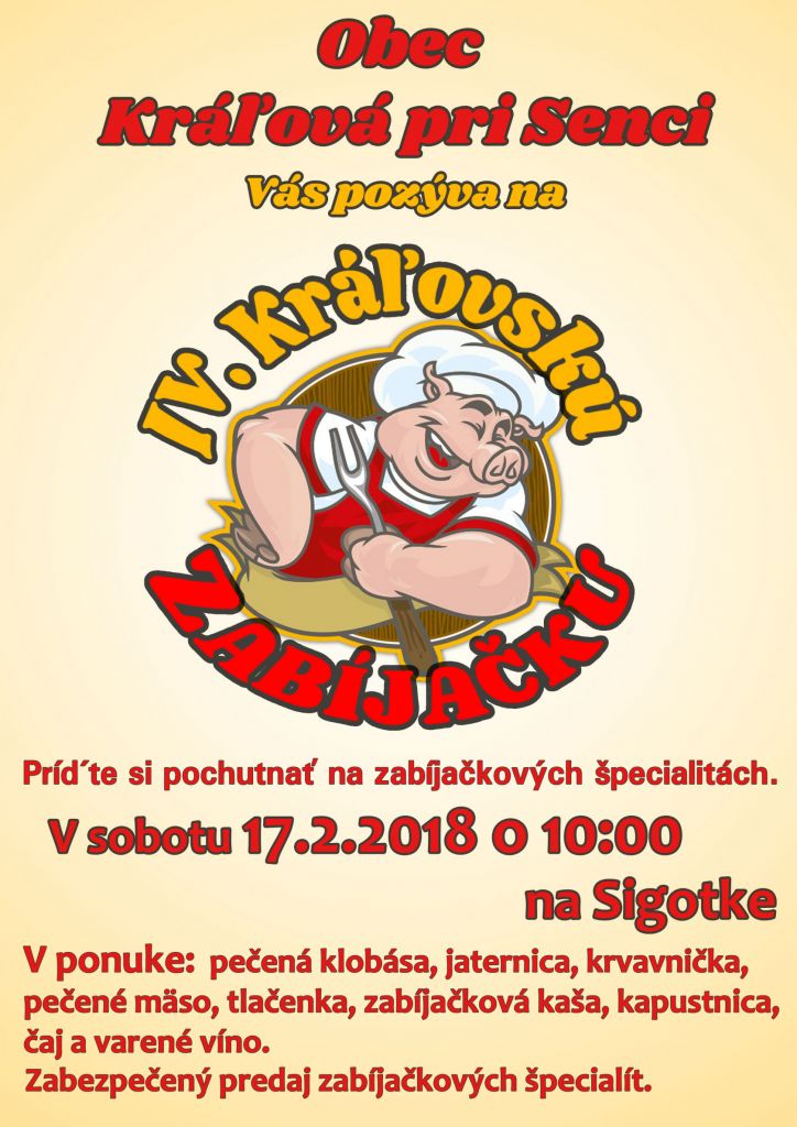 Príďte si v sobotu 17.2.2018 o 10:00 na Sigotku pochutnať na zabíjačkových špecialitách.